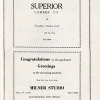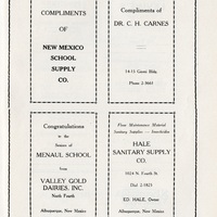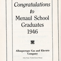 - Yearbook created by the students of The Menaul School, Albuquerque, New Mexico, in 1946. This edition features a dedication, photographs, a list of the students, school history, as well as drawings and local advertisements. 73 pages total.