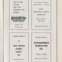 - Yearbook created by the students of The Menaul School, Albuquerque, New Mexico, in 1948. This edition features a dedication, photographs, a list of the students, school history, as well as drawings and local advertisements. 81 pages total.