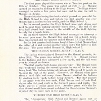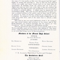 - Yearbook created by the students of the Menaul School, Albuquerque, New Mexico, in 1914. This edition was printed and follows the format of the 1911 edition, which was the first to be printed and have more than one copy. Similar to the 1911 book, the 1914 edition features a dedication, photographs, a list of the students, school history, an event calendar for the duration of the school year, as well as drawings, poems, and even local advertisements. 64 pages in total.